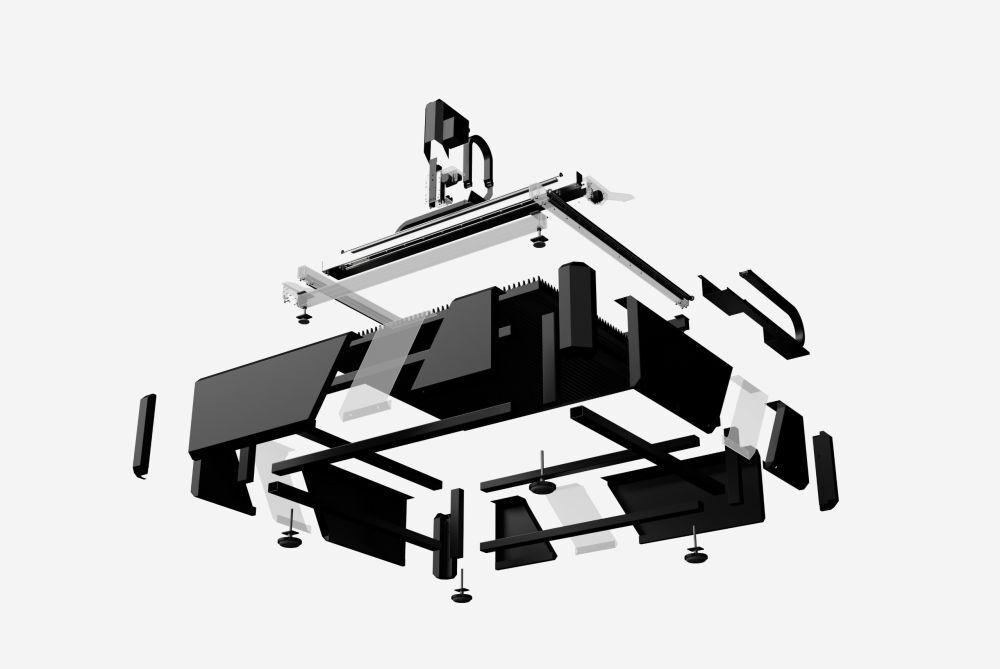 Настроенный комплекс станков и специализированной оснастки, выстроенный в последовательную цепочку, которая позволяет производить станки с ЧПУ различного типа.