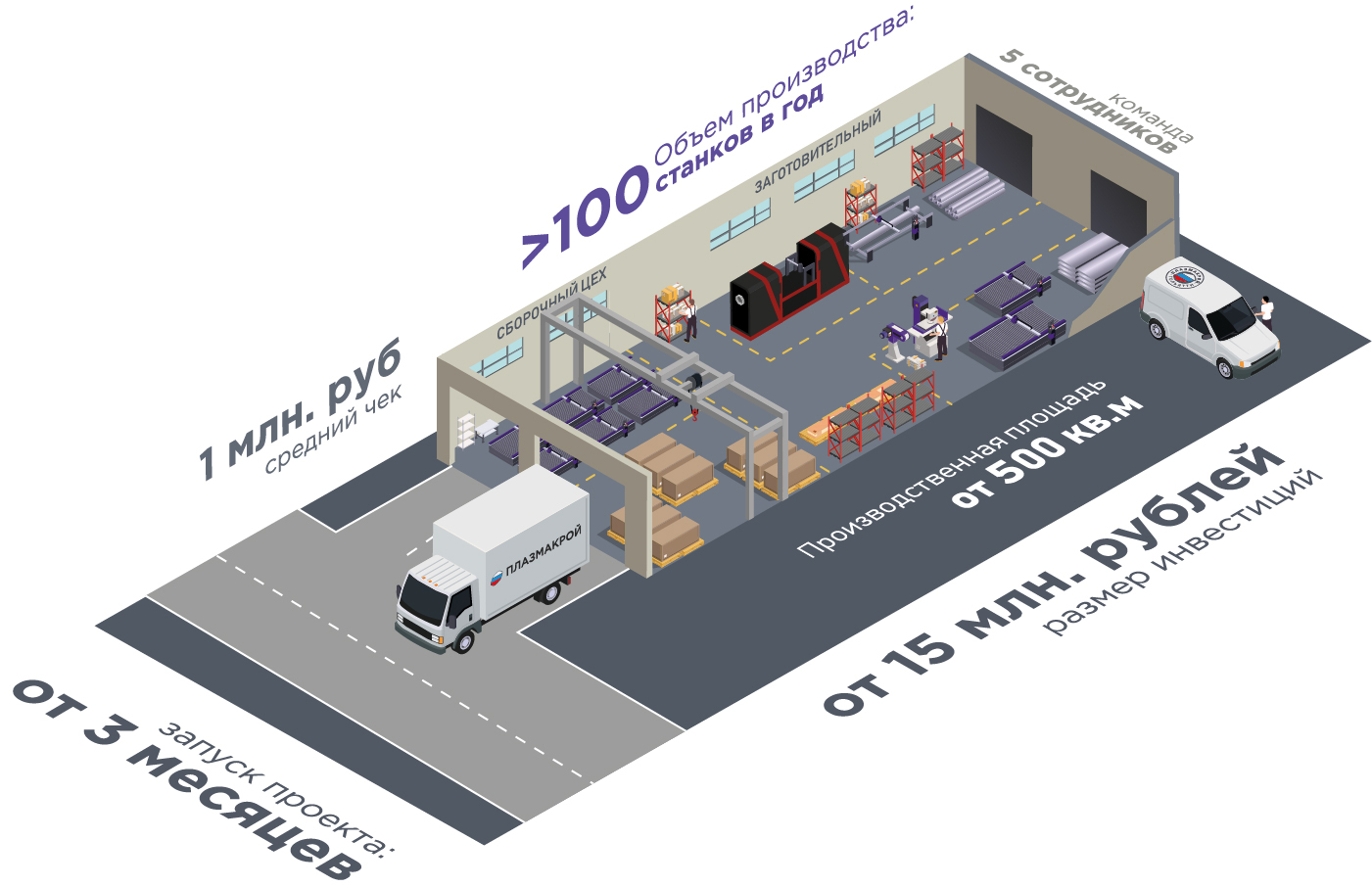 Вы получаете готовое решение для организации производства с невысокими требованиями к инфраструктуре и минимальным количеством персонала
